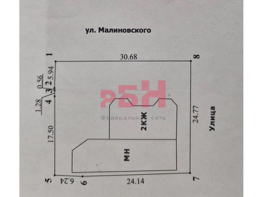 - фасад на ул. Малиновского - 30,68 метров